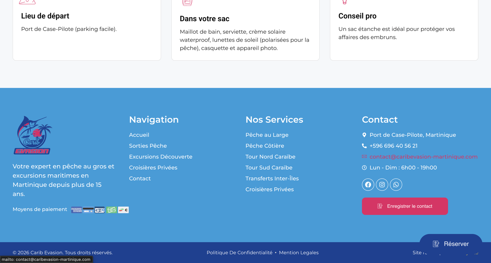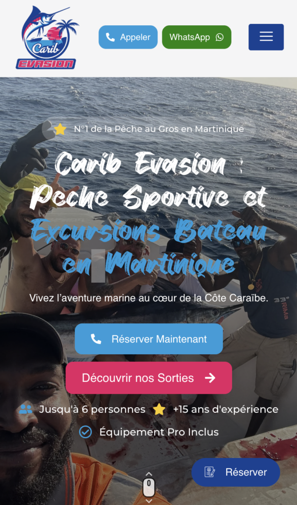 Problématique : Le capitaine de Carib Évasion avait besoin d’un outil de réservation en ligne performant pour asseoir sa crédibilité et sécuriser son planning face à une demande croissante. L’enjeu était de proposer un parcours client fluide, capable de gérer les disponibilités en temps réel et les acomptes sans intervention manuelle.